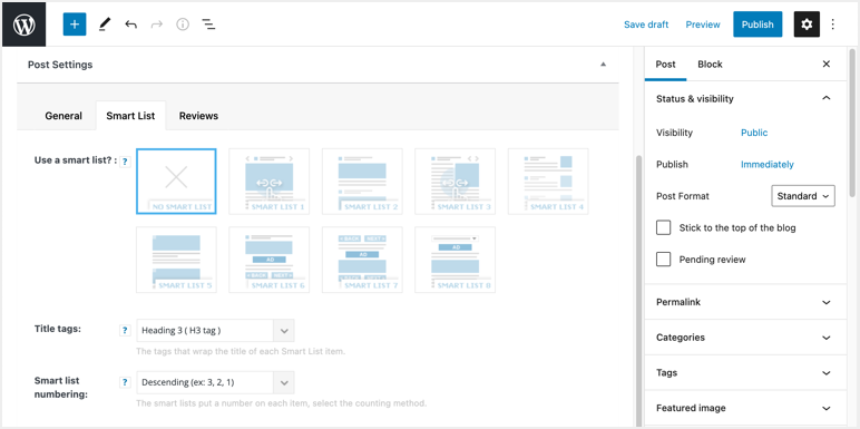 有许多报纸和杂志风格的主题提供列表类型的内容创作。您需要的是简单地创建带有标题和其他元素的内容。主题将通过将标题用作不同部分来自动创建列表。最受欢迎的报纸主题是在WordPress网站中创建列表的最佳示例之一。该主题将为您提供带有智能列表的文章布局,并根据您的内容标题自动创建列表。您可以使用文章编辑器中可用的元框选项自定义每个文章的列表,如下所示: