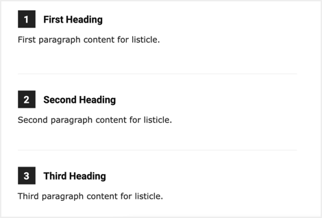 Listicles将有其特定的列表标题,并且在每个标题下方都有足够的内容来解释和阐明每个列表标题。
