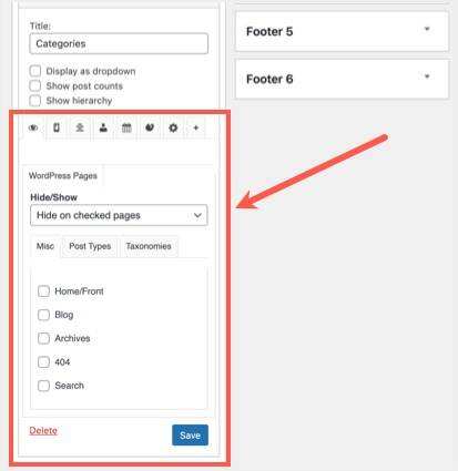 - 现在,转到“外观 > 小工具”部分并展开您想在手机上隐藏的小工具。您会发现该插件为小工具添加了许多选项。