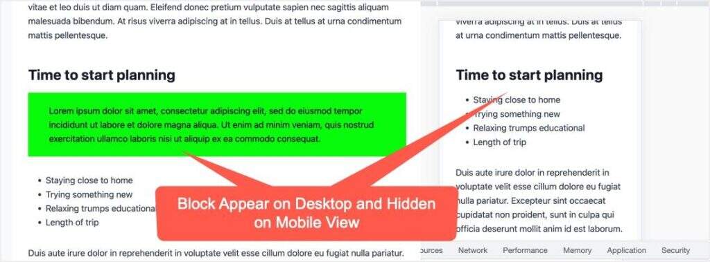 - 激活插件后,编辑您想要隐藏区块的任何现有文章。在这个例子中,我们将在移动设备上隐藏一个绿色背景的段落。