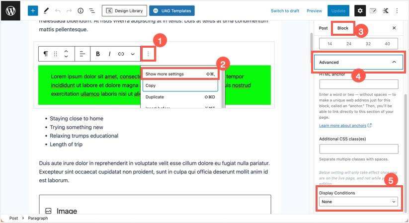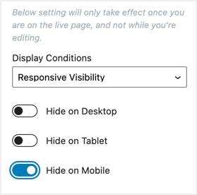 注意:该插件将向每个区块添加“显示条件”元框,即使您在“设置 > UAG”部分停用其所有模块。如果您停用插件,这些区块将在所有设备上可见。