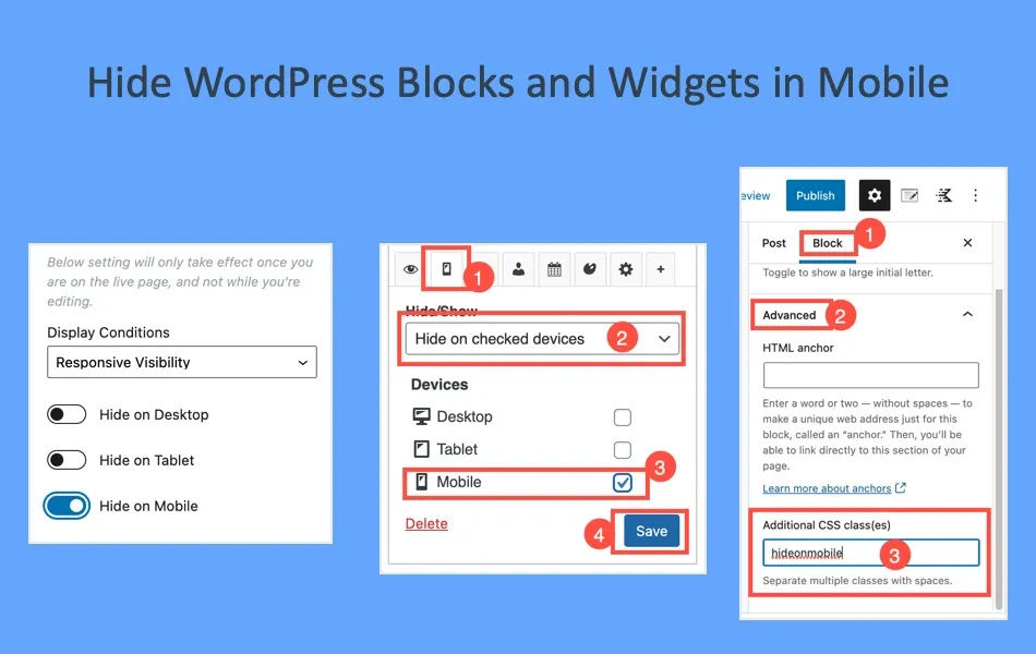 然而,许多用户仍然希望在桌面上有一个侧边栏,但又希望消除移动设备上不必要的杂乱。如果您正在寻找在手机上隐藏特定区块或小工具,那么您可以在WordPress中做到这一点。