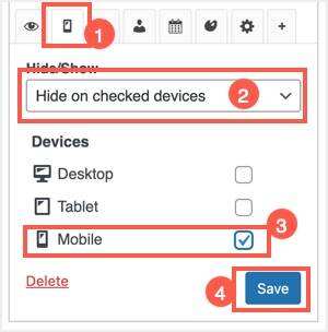 - 要在手机中隐藏选定的区块,请选择“响应可见性”选项。