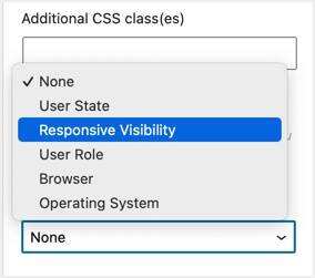 - 单击其下拉菜单以查看多个选项。该插件提供隐藏或显示任何基于区块的多个条件,如用户状态(已登录或注销)、用户角色、浏览器和操作系统。