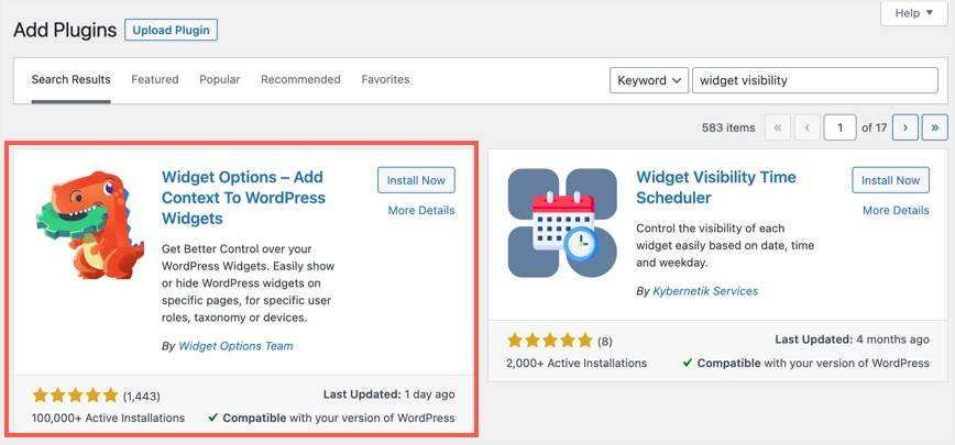 - 安装并激活“ Widget Options – Add Context To WordPress Widgets ”插件。