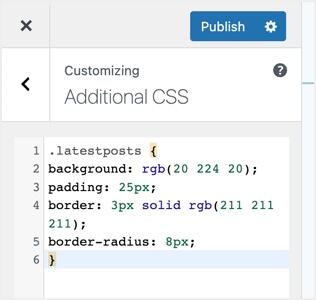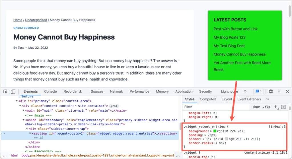- 让我们添加以下CSS样式,以将背景颜色、填充、边框和边框半径添加到最新的文章小工具。