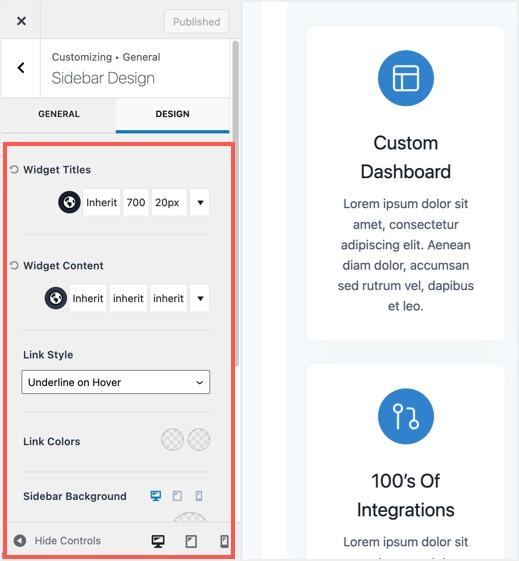 - 如果需要,更改字体大小并为您的小工具添加填充。通过单击“取消链接边”图标,可以为所有四个边应用单独的填充。