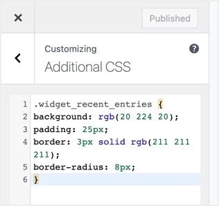 - 它在带有CSS .widget_recent_entries类的定制器中如下所示。