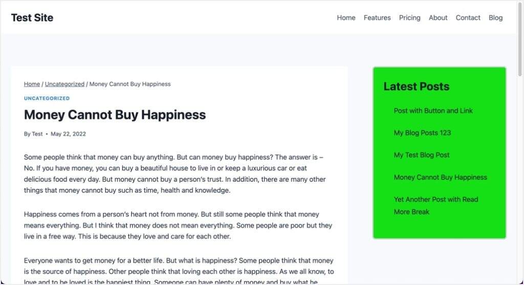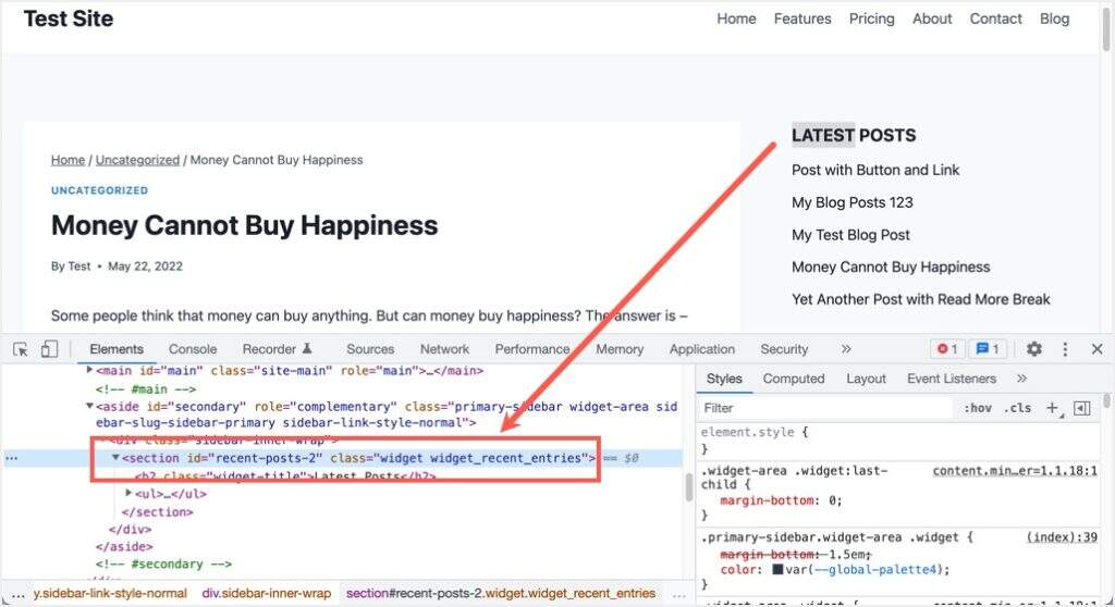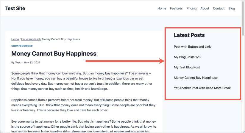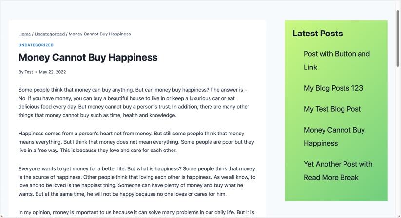 现在查看您网站的页面,您将看到侧栏中的最新文章小工具将出现在您的所有自定义样式中。您可以使用此方法添加任何自定义样式,并确保使用不同的颜色来匹配您网站的布局。