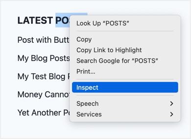 - 右键单击小工具标题并选择“检查”选项(这是使用Google Chrome浏览器,该选项在某些浏览器中可能显示为“检查元素”)。