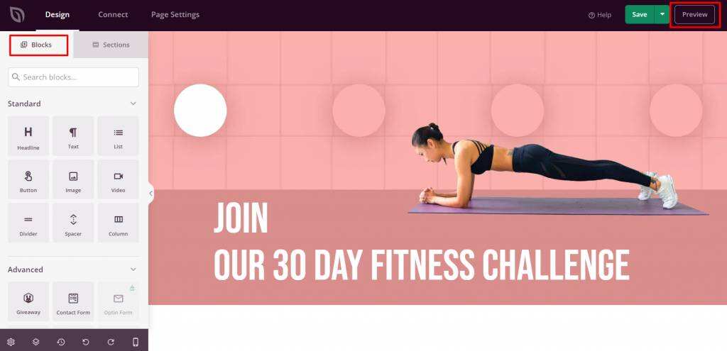一旦您对结果感到满意,请使用“Preview”按钮查看您的着陆页,以确保一切正常。