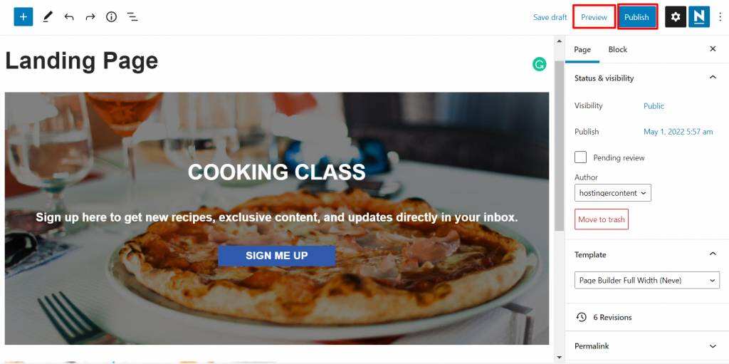 编辑页面模板并设置第三方工具后,是时候发布您的WordPress着陆页了。