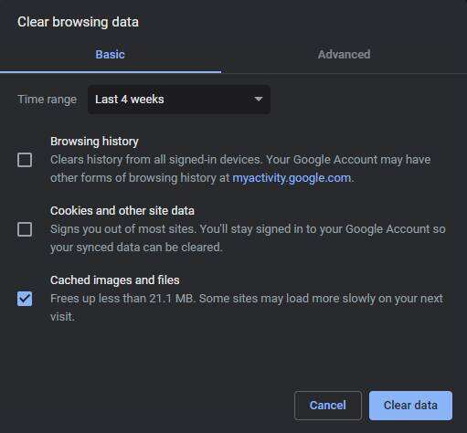 我们建议从所有时间清除缓存的图像和文件,以确保您不会留下导致问题的数据。单击清除数据以完成。