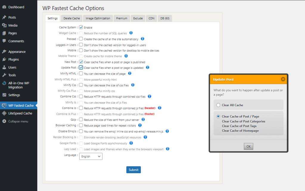 另一种选择是检查Update Post窗口以在您对文章或页面进行更改时清除缓存。然后,单击Submit按钮以完成该过程。