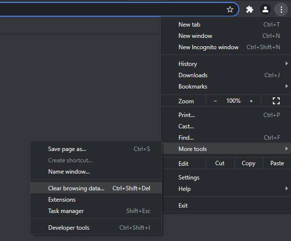 每个浏览器都有自己的手动清除浏览器缓存的步骤。使用谷歌浏览器,点击地址栏右侧的三点菜单。然后,前往更多工具 -> 清除浏览数据,谷歌浏览器将引导您进入设置页面。