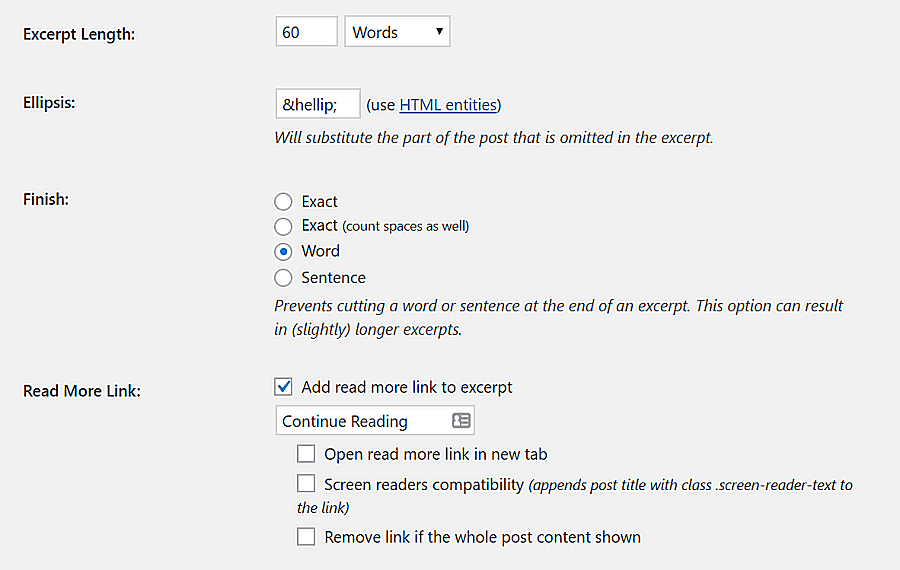 - 使用插件‒ 安装Advanced Excerpt插件并配置其设置。
