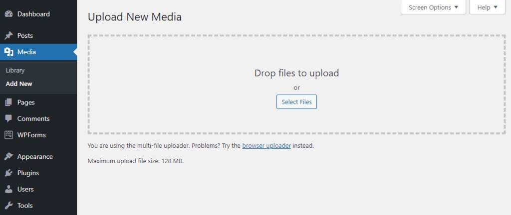 首先,前往仪表盘-> 媒体-> 添加新文件。