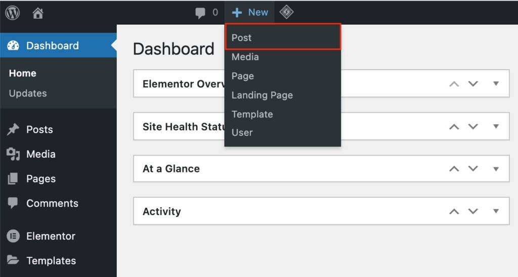 第一个选项来自仪表盘-> 文章-> 写文章。