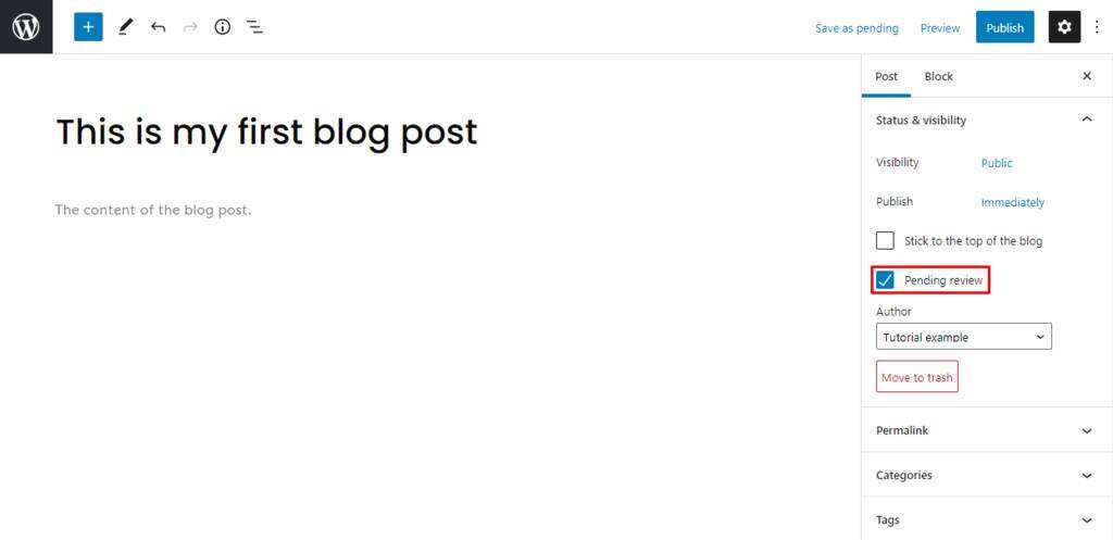 对于有多个作者的网站来说,这是一个很好的选择,可以相互通知需要审查的草稿。但是,只有一位作者的网站仍然可以使用它来提醒自己在发布之前查看特定文章。