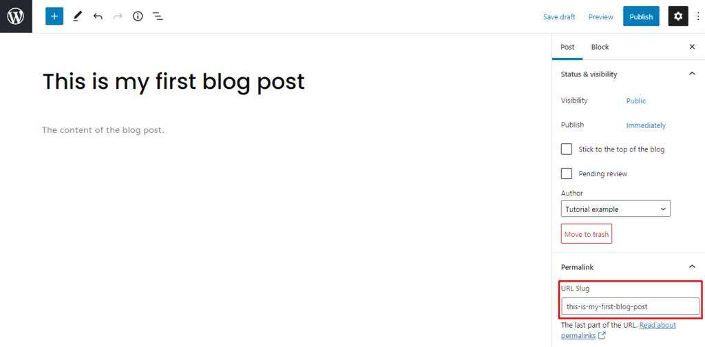 发布文章后,仍然可以更改slug。如果您在已发布后更改标题,请再次检查slug。