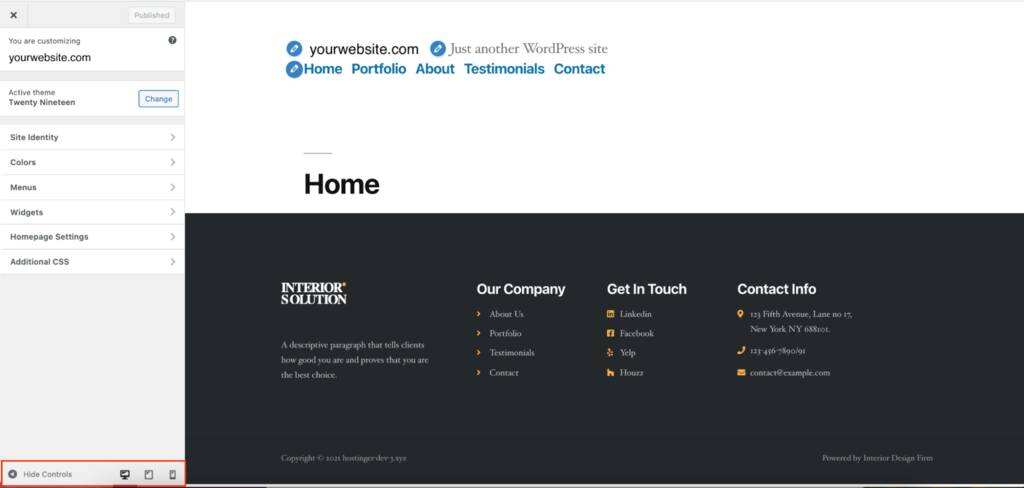 要在其他屏幕上显示网站预览,请前往仪表盘 -> 外观 -> 自定义。在屏幕左下角的三个不同图标之间切换。