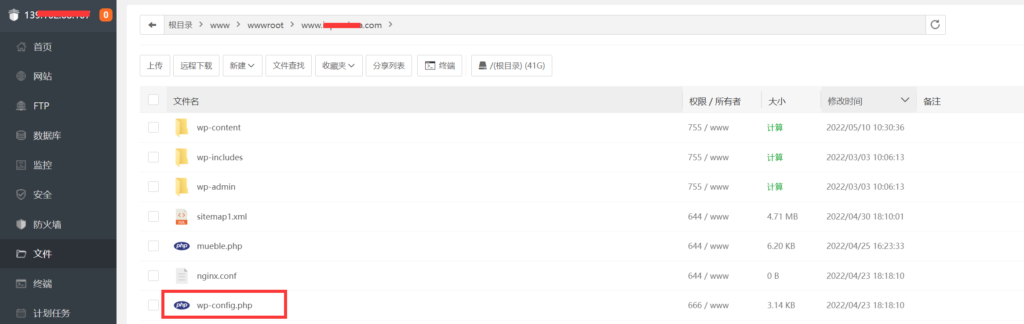 2. 进入/www/wwwroot选择网站对应域名,进入WordPress安装目录。