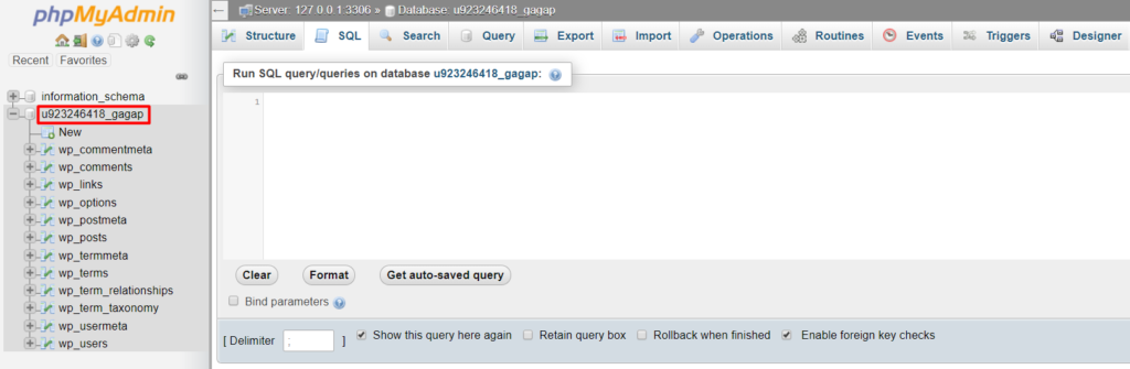 注:您的表前缀可能不是wp_。在 phpMyAdmin的左侧面板上查看正确的表前缀,并更新SQL查询。