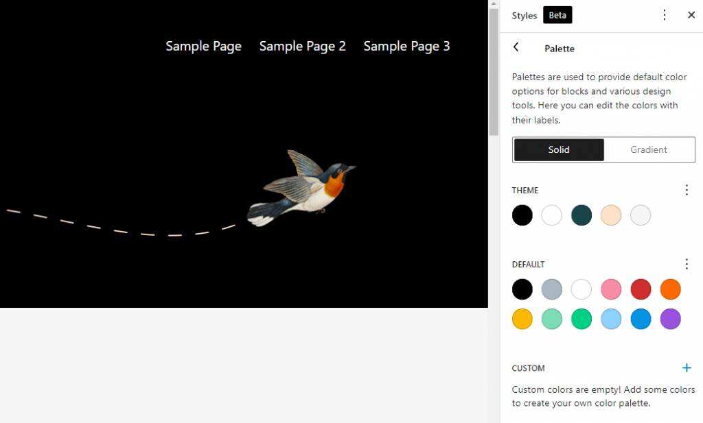 新的全站点编辑方法还减少了对编码和自定义CSS的需求。新的区块编辑器引入了控制theme.json文件的全局样式面板。这使用户可以更改整个站点的样式,例如直接在默认编辑器上添加自定义颜色和更改排版。