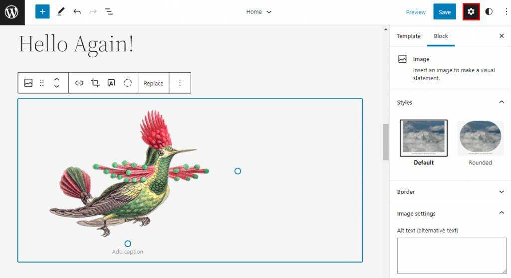 每个区块还具有不同的设计工具,具体取决于区块类型。点击屏幕右上角的设置按钮,右侧会出现一个侧边栏。