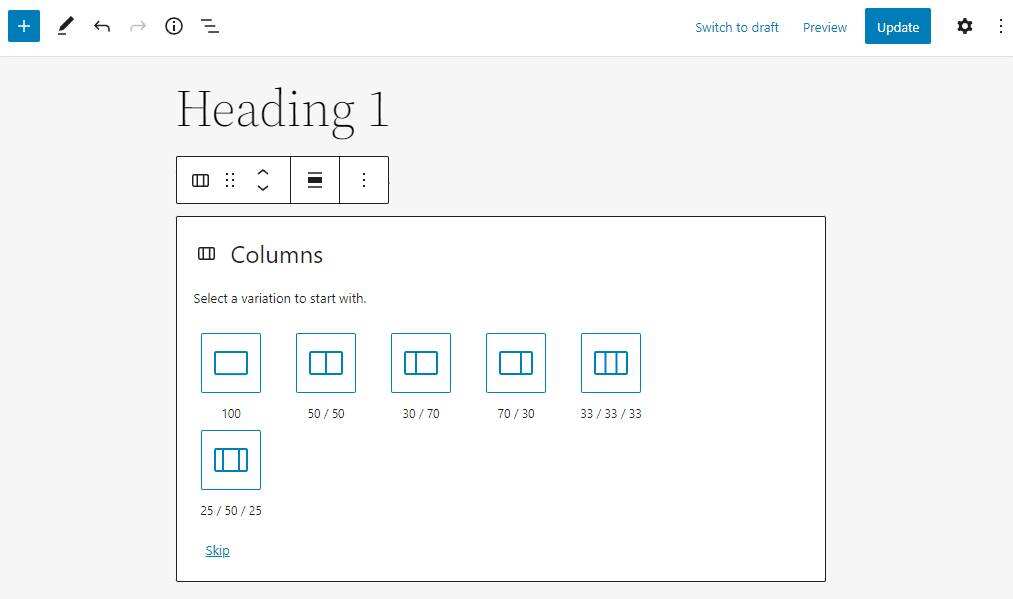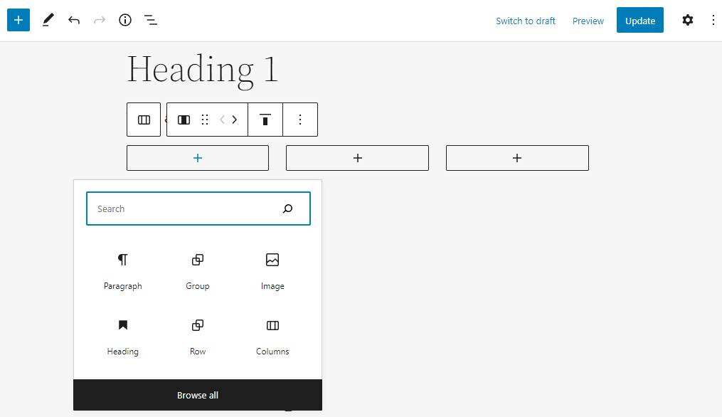 - Gutenberg编辑器将根据所选样式生成新区块。单击加号( + ) 图标以向这些区块添加新元素。