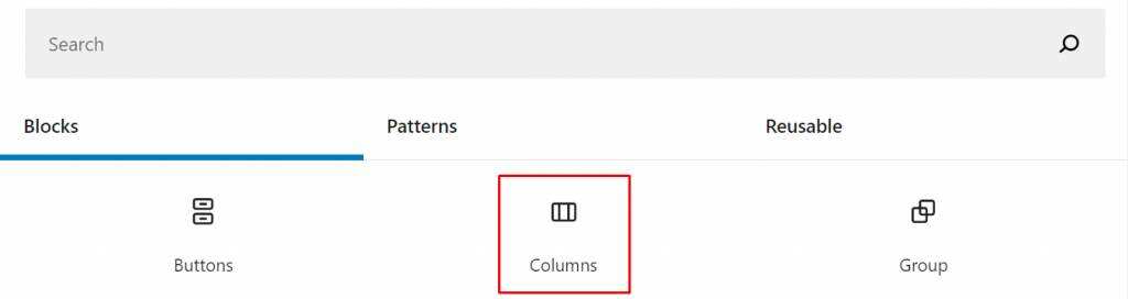 但是,您可能希望将其他区块元素添加到文本中。为此,请单击屏幕左上角的加号( + ) 按钮,然后选择或搜索所需的区块。