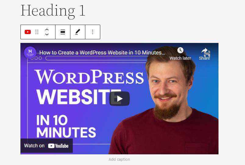- 如果网站未列出,请使用嵌入区块。对于此示例,我们将使用YouTube区块。