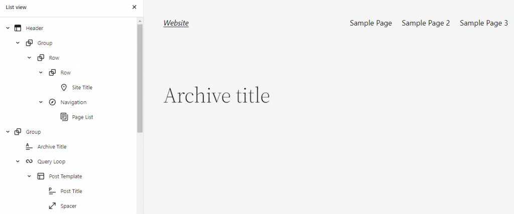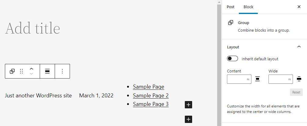 栏目区块的一个很好的用途是创建一个侧边栏。选择30/70或70/30栏目变体,并在较大的列中插入查询循环区块。使用较小的组区块来包含侧边栏的小工具区块。