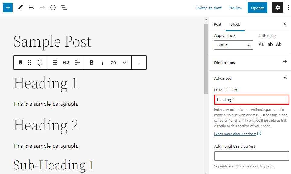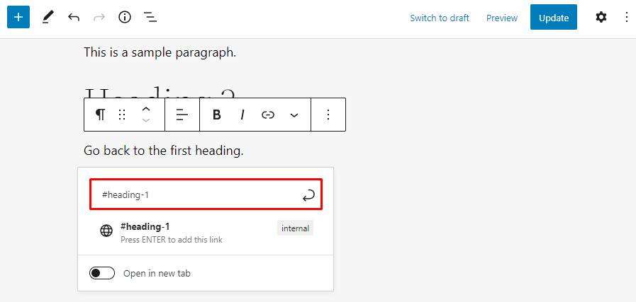 以下步骤将向您展示如何在Gutenberg中创建HTML锚点。