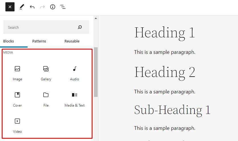 我们已经讨论了使用图像和图库区块嵌入图像。现在让我们看看其他媒体区块。