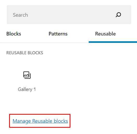 您可以通过区块管理器删除或编辑任何可重复使用的区块。为此,请在可重用区块选项卡中选择管理可重用区块。