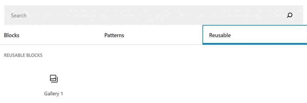 - 单击加号( + ) 图标,然后浏览全部。打开Reusable选项卡,您将在其中找到所有可重复使用的区块。