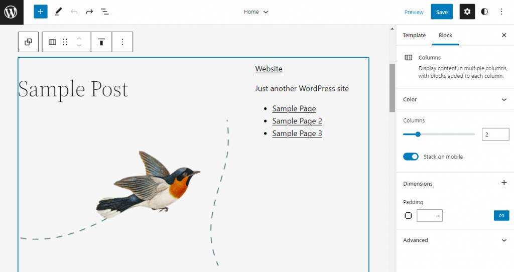 使用区块将使网站定制更容易,因为您可以通过移动区块轻松地重组网站。可用的区块样板还可以让您立即更改布局。