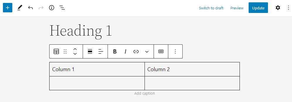 以下是使用Gutenberg区块编辑器创建表的方法。