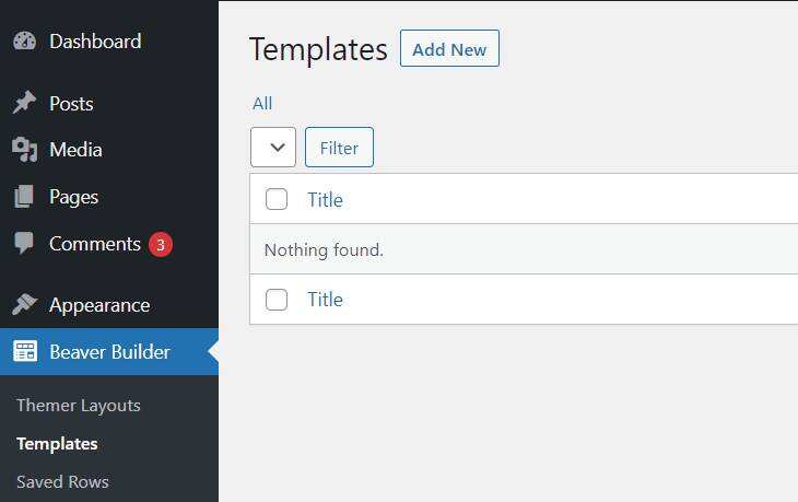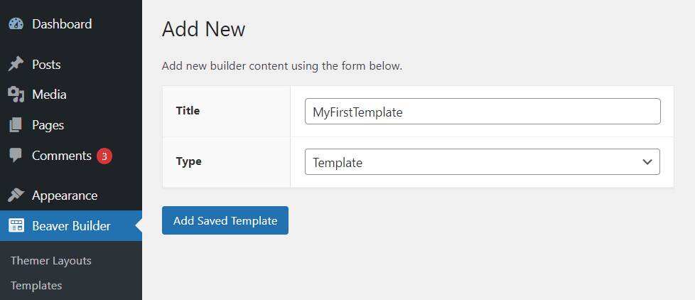 在WordPress仪表板中安装并激活插件后,导航到Beaver Builder -> Templates并选择Add New: