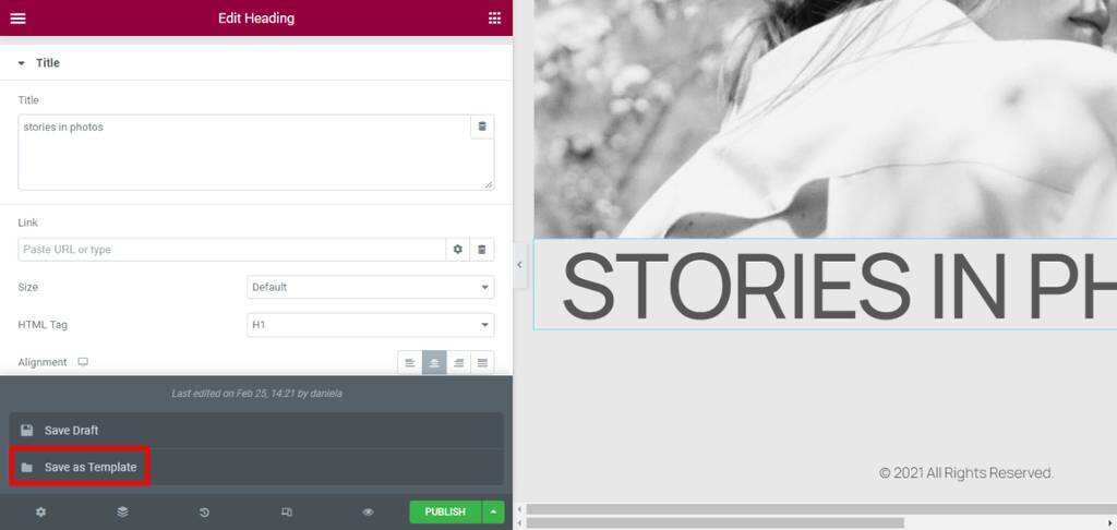创建并保存模板后,您可以在 Elementor 设计的任何页面上使用它。