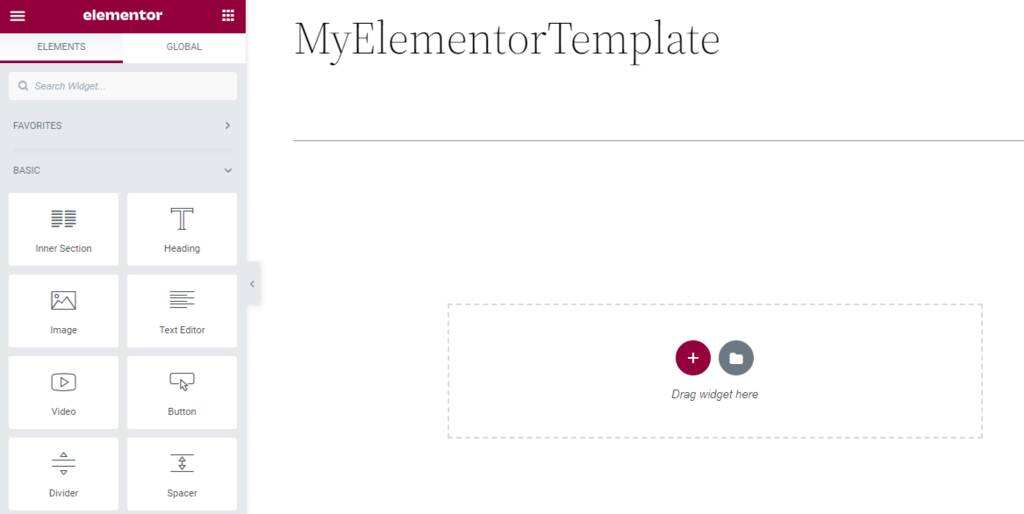 准备好后,单击创建模板。这将启动Elementor编辑器:
