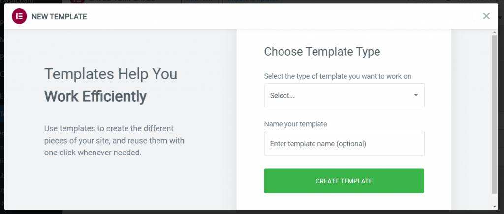 然后Elementor会要求您选择要创建的模板类型并为其命名: