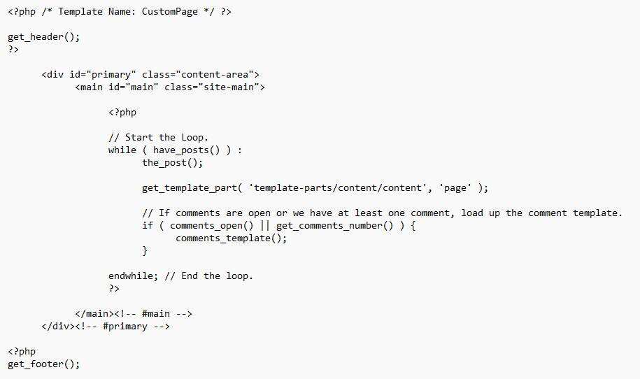 添加代码后,将文件另存为“custompage.php”之类的文件。您可以为模板文件使用任何名称,但它必须具有.php扩展名。