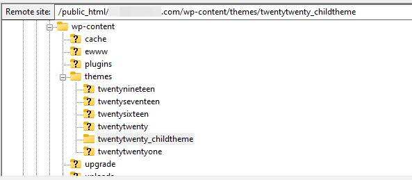连接到站点后,导航到wp-content/themes/文件夹并打开您的子主题文件夹: