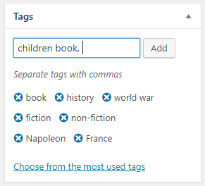 这两种分类法之间的另一个区别是它们对您的文章的强制性程度。类别是必需的,而标签是可选的。
