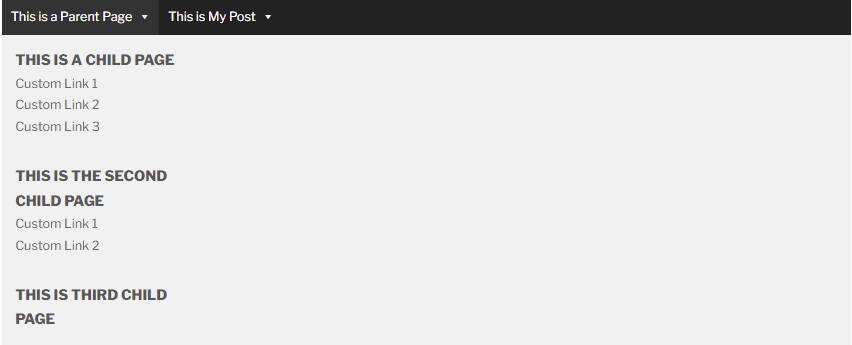 正如您在下面的类别项中所见,嵌套在子项下的任何内容都将显示在子菜单中: