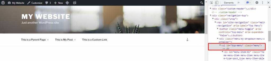 使用浏览器中的检查工具来定位主题的CSS #ID选择器——您需要它来选择特定元素进行自定义。