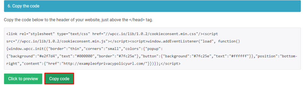 Tips: cookie生成器网站会要求您链接自己的cookie或隐私政策。如果您还没有,您可以免费生成它。