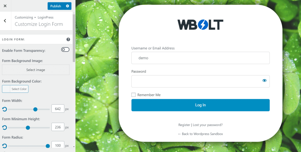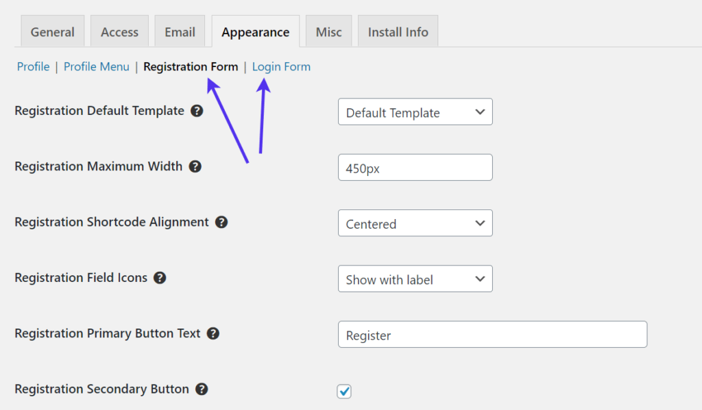 其他一些设置面板提供注册表、登录表单等选项。确保调整发送给新注册的电子邮件并更改WordPress注册表单的许多部分,包括宽度和对齐方式。